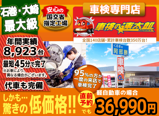 宮城石巻・大崎・東松島で格安3.7万の車検の速太郎!車検年8千台