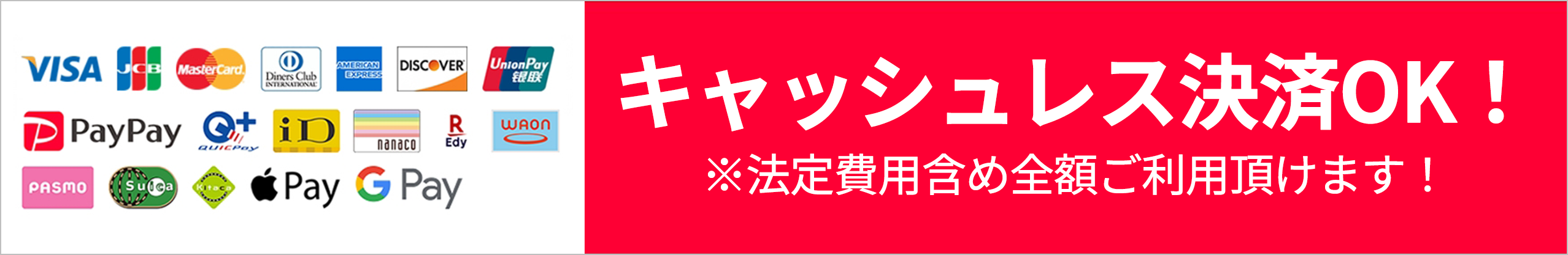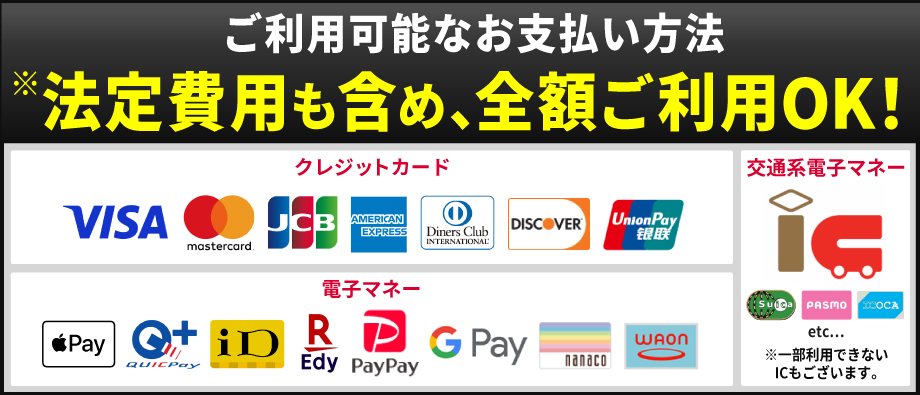 ※法定費用も含め、全額カード払い・電子マネー払いが可能です。